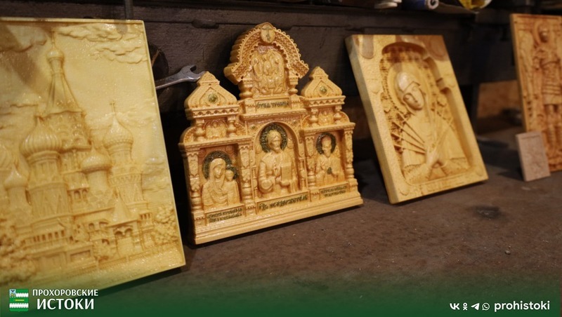 Первыми изделиями мастера стали небольшие иконы, триптихи, крестики и другие православные предметы. Постепенно об увлечении соседа стали узнавать земляки, многие приходили с просьбами помочь в бытовых вопросах, а кто-то, увидев профессиональный станок, интересовался его предназначением. Так Иван начал заниматься гравировкой, фамильными гербами и даже фигурными адресными табличками, одна из которых красуется на воротах его подворья.