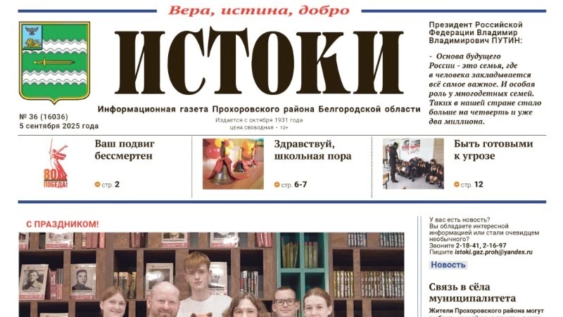 Газета «Истоки» №36 от 5 сентября 2025 года