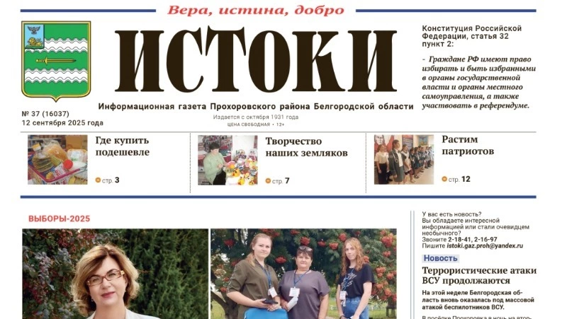 Газета «Истоки» №37 от 12 сентября 2025 года