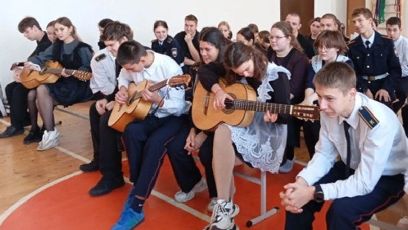 Ученики Прелестненской школы познакомились с богатой историей семиструнной гитары и узнали тонкости игры на ней. Также ребята познакомились с личной коллекцией инструментов музыкантов.