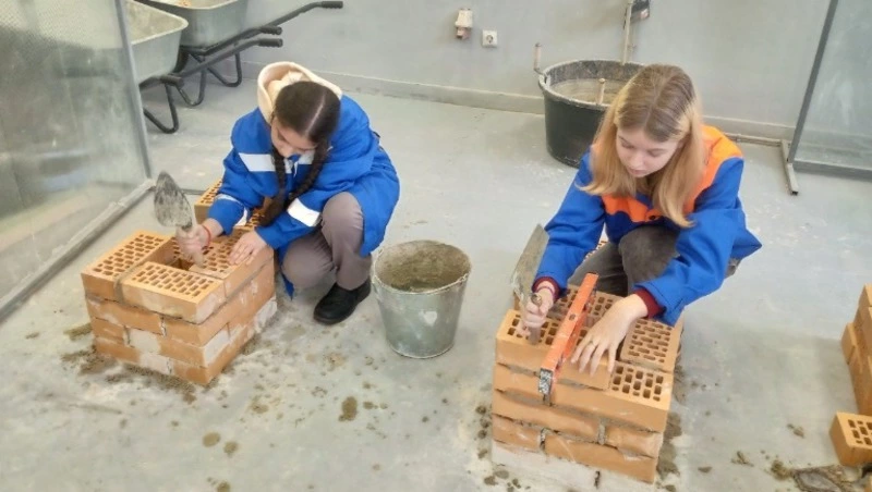 В ходе проб по кирпичной кладке и декоративному покрытию поверхности обучающиеся познакомились с профессиональными инструментами для работы. Также ребята смогли увидеть процесс кладки и попробовать свои силы в данной специальности.