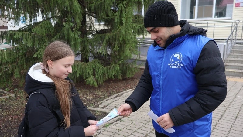 Волонтёры Победы - это участники Всероссийского общественного движения по сохранению исторической памяти. Членами волонтёрского движения были розданы листовки о том, как можно стать их единомышленниками.